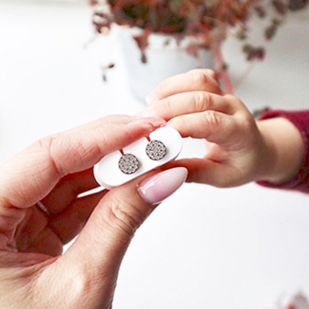 Earrings developed in consultation with skin specialists, made with Pure Medical Grade Plastic with crystal stones and a unique gold or silver coating on parts that do not come into contact with th...